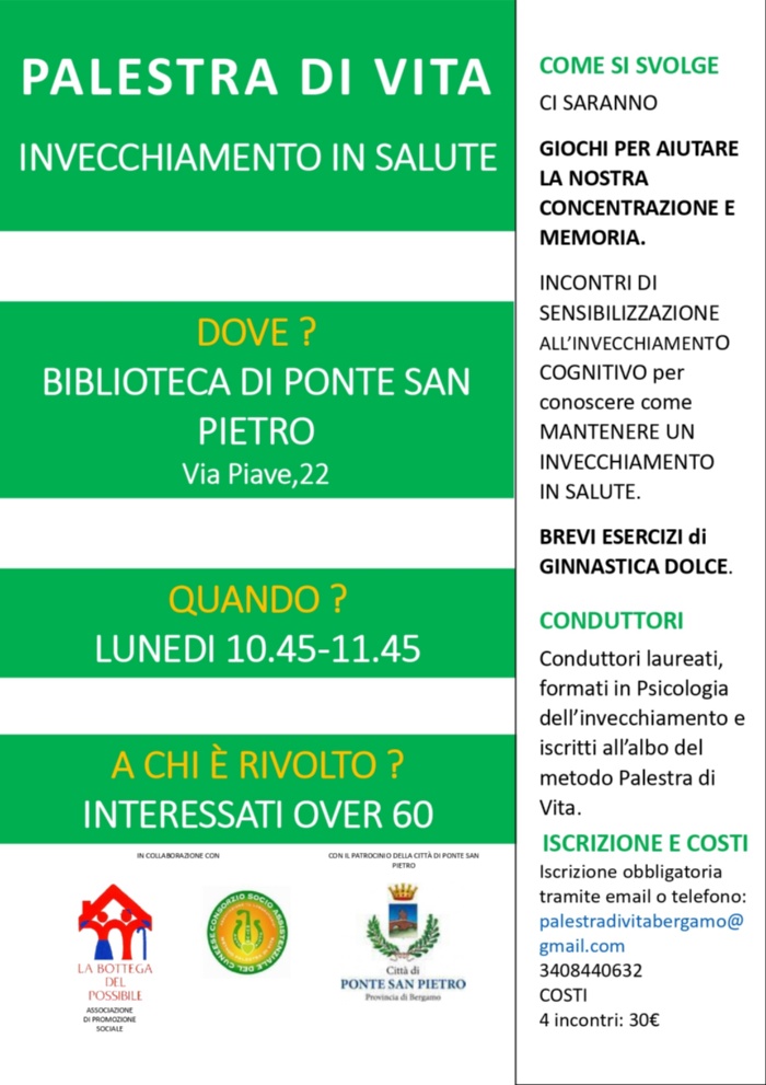 Incontri di sensibilizzazione all'invecchiamento cognitivo per conoscere come manterene un invecchiamento in salute. Giochi per aiutare la concentrazione e la memoria. Brevi esercizi di ginnastica dolce.