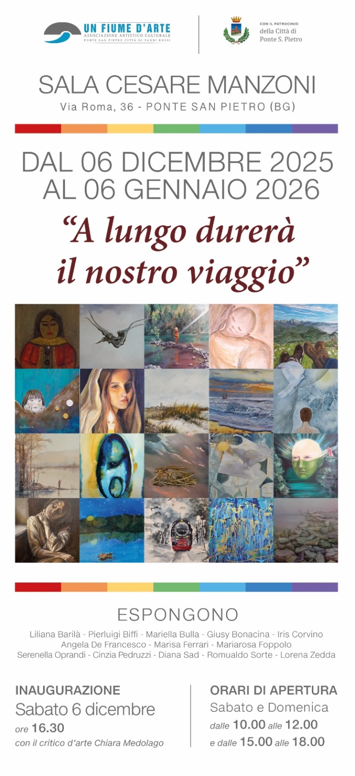 La Sala Cesare Manzoni ospita la mostra “A lungo durerà il nostro viaggio”, in programma dal 6 dicembre 2025 al 6 gennaio 2026. L’esposizione riunisce opere di diversi artisti del territorio, offrendo un percorso tra stili, tecniche e sensibilità differenti. La mostra è visitabile il sabato e la domenica.