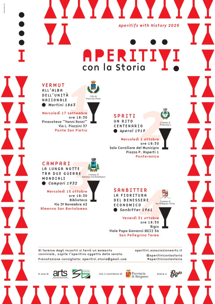 Dettagli dell'evento L'incontro di Ponte San Pietro si terrà mercoledì 17 settembre 2025 dalle ore 18:30. Al termine degli incontri si terrà un momento conviviale, ospite l’aperitivo oggetto della serata. Prenotazione consigliata: aperitivi.storia@gmail.com