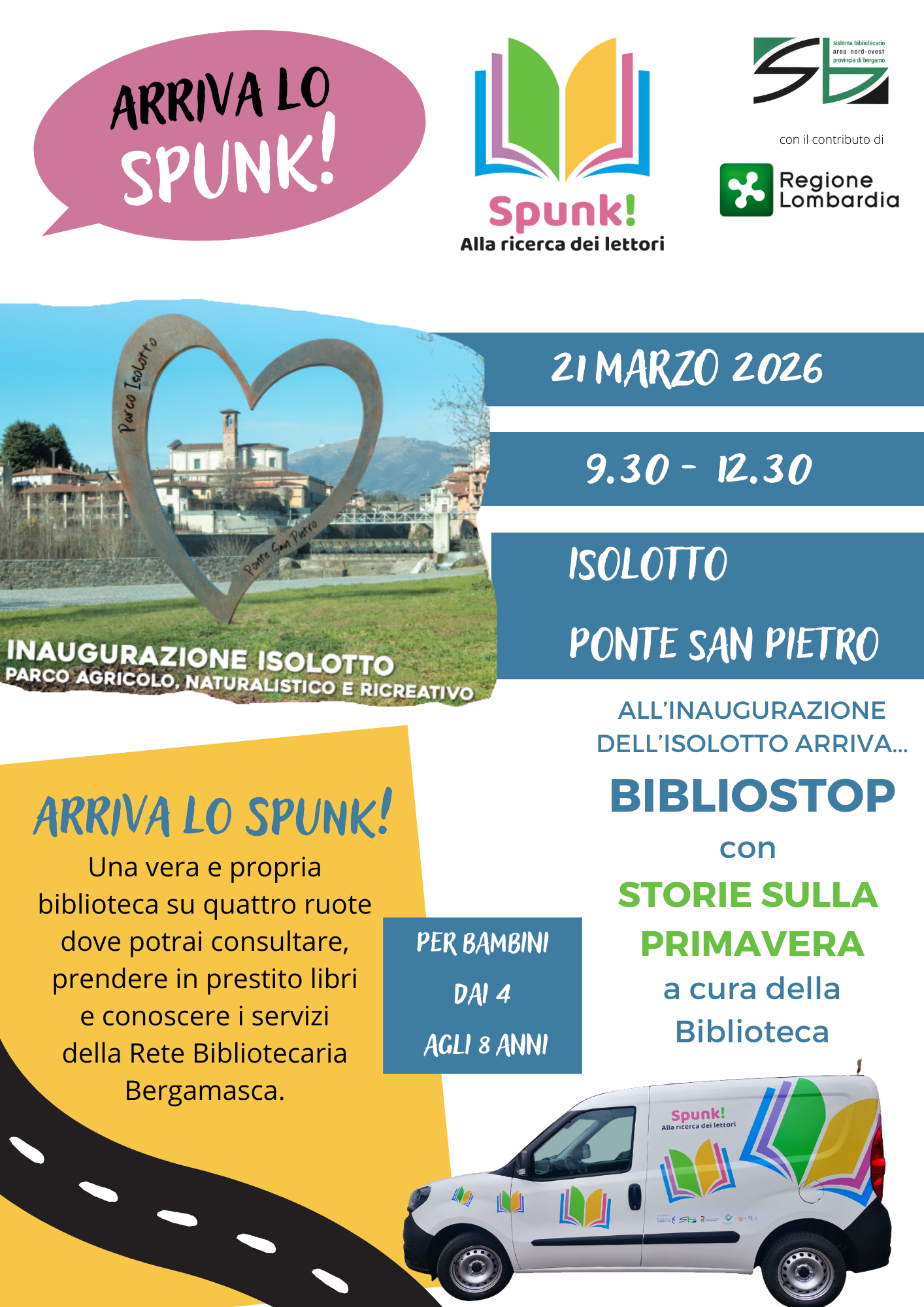 All'inaugurazione dell'Isolotto arriva... Bibliostop! Con storie sulla primavera a cura della Biblioteca.