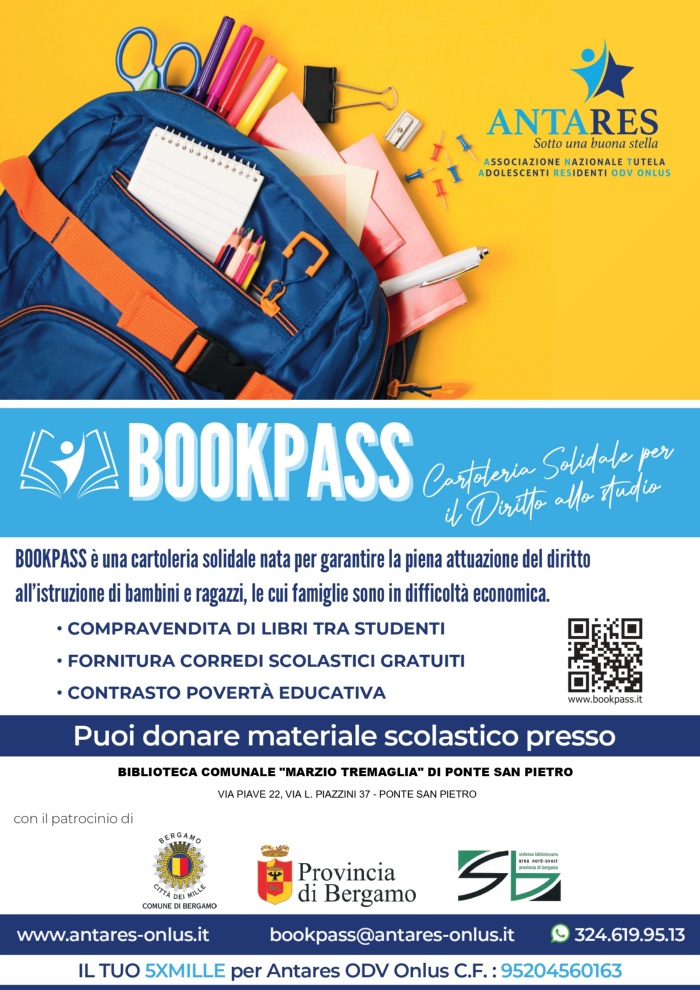 Dettagli dell'evento Insieme per il diritto allo studio di bambini e ragazzi in difficoltà economica. Cosa raccogliamo: Penne, matite, gomme e temperini Pennarelli, pastelli e tempere Forbici, correttori ed evidenziatori Quaderni e diari Squadre e compassi Zaini ed astucci (anche usati, purché in buono stato) Dove donare: Biblioteca di Ponte San PietroFino al 31 ottobre
