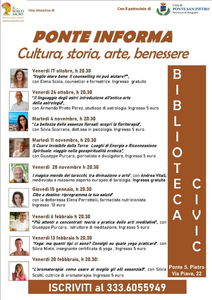 Ciclo di incontri organizzati da Il Bosco Sacro con il patrocinio della città di Ponte San Pietro.