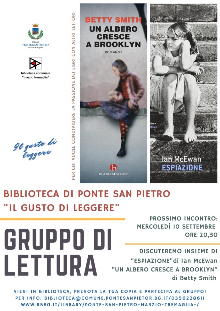 Dettagli dell'evento In questo appuntamento, si discuterà dei seguenti libri: "Espiazione", di Ian McEwan, "Un albero cresce a Brooklyn", di Betty Smith.