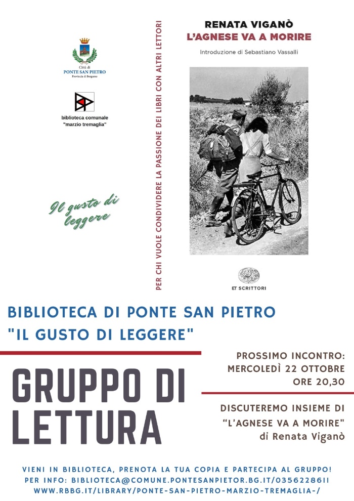 Dettagli dell'evento In questo appuntamento, si discuterà del seguente libro: "L'Agnese va a morire", di Renata Viganò.