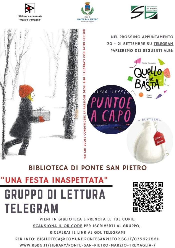 Dettagli dell'evento In questo appuntamento, si discuterà dei seguenti albi: "Punto e a capo", di Oliver Jeffers, "Quello che basta", di Silvia Crocicchi, "Albert le Blanc", di Nick Butterworth.