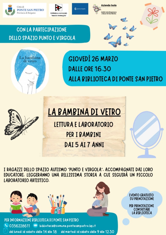 Presentazione della lettura "La bambina di vetro", accompagnato da un laboratorio rivolto ai bimbi fra i 5 e i 7 anni.