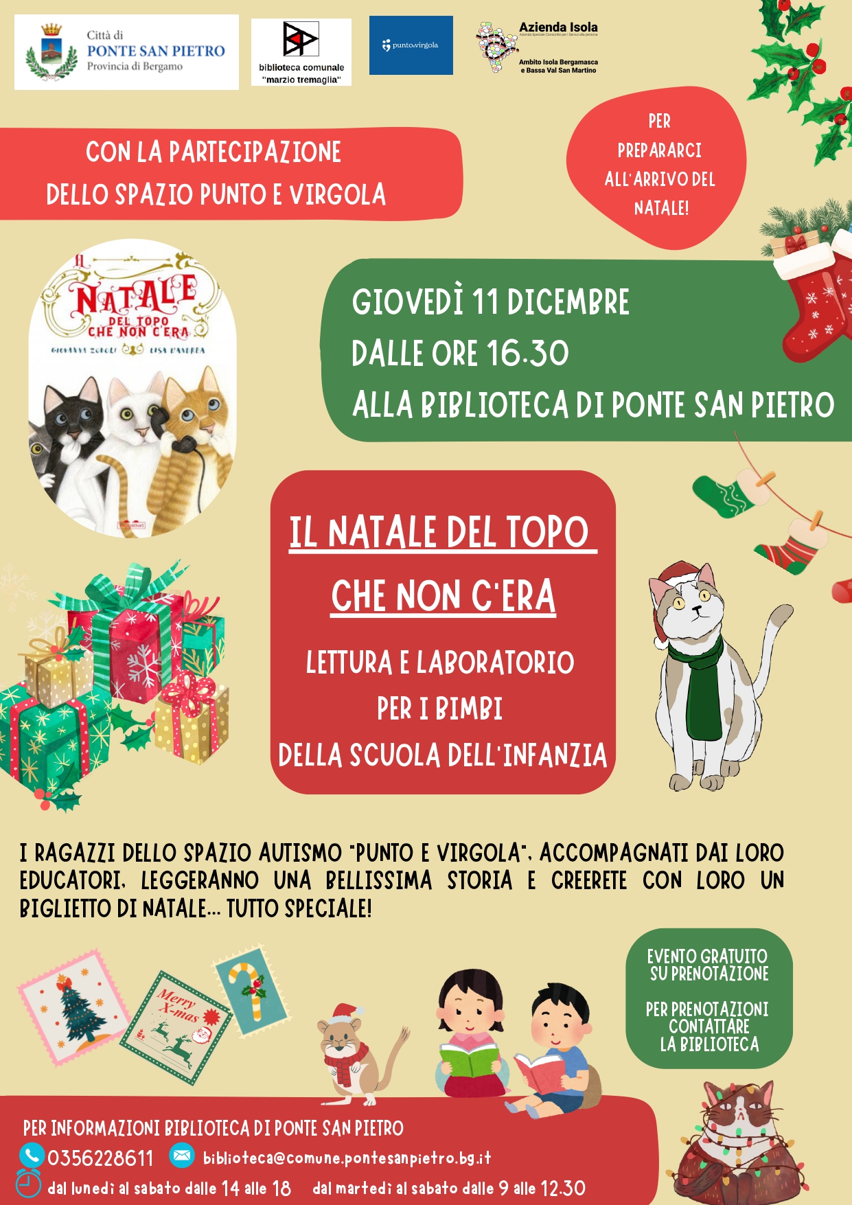 I ragazzi dello spazio autismo "Punto e Virgola", accompagnati dai loro educatori. leggeranno una bellissima storia e i bambini realizzeranno con loro un biglietto di Natale speciale!