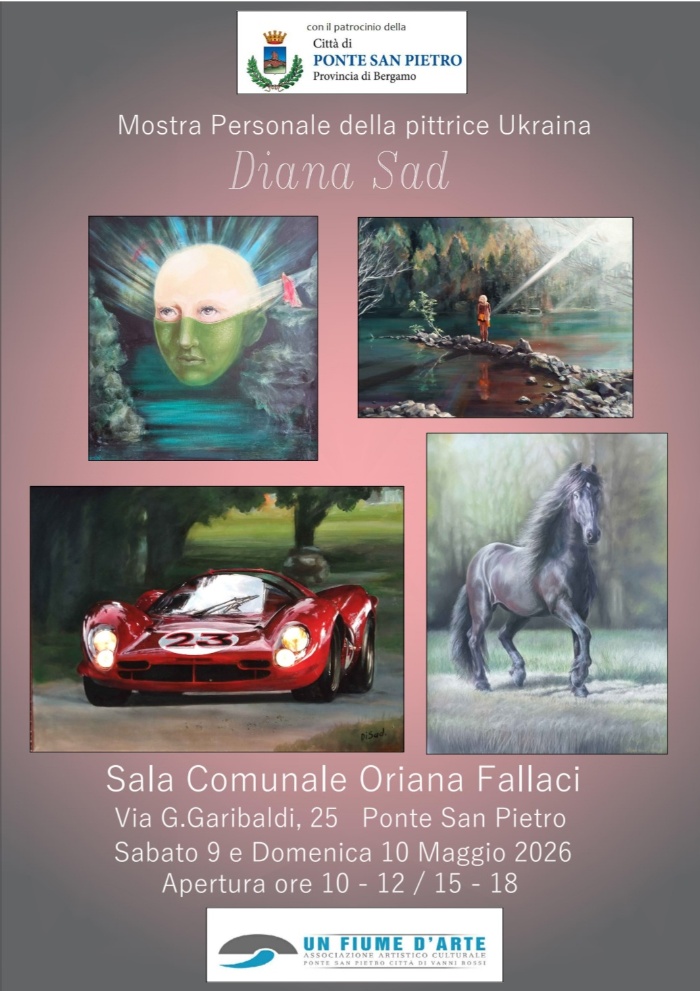 Presso la Sala "Oriana Fallaci" di Ponte san Pietro sarà visitabile una mostra personale della pittrice ucraina Diana Sad. La mostra si terrà sabato 9 e domenica 10 maggio, e sarà visitabile negli orari di apertura della sala (dalle 10 alle 12 e dalle 15 alle 18).