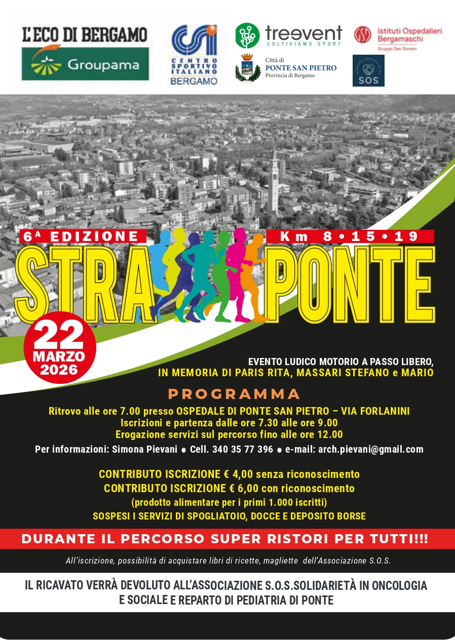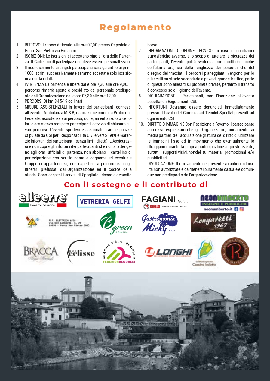 Ritrovo alle ore 7.00 presso OSPEDALE DI PONTE SAN PIETRO – VIA FORLANINI